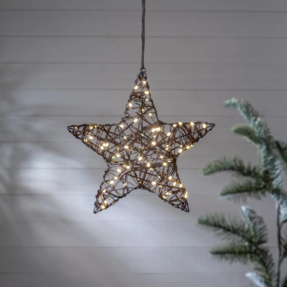 Vicke är en utomhusdekoration från Star Trading i form av en40 cm hög stjärna. Av brun konstrotting med metallstomme. En fin dekoration för uteplatsen och trädgården.