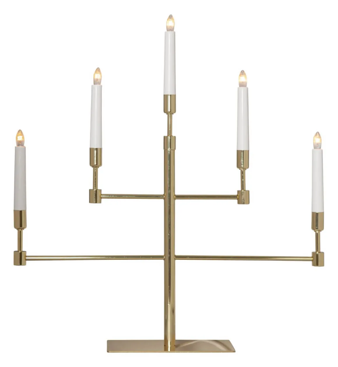 Modern och stilren adventsljusstake i mässingsfärg från Star Trading, Vide är tillverkad i metall och har 5 stycken ljuskällor. När enkelhet och stilrent är ledordet så är Vide ett perfekt val.