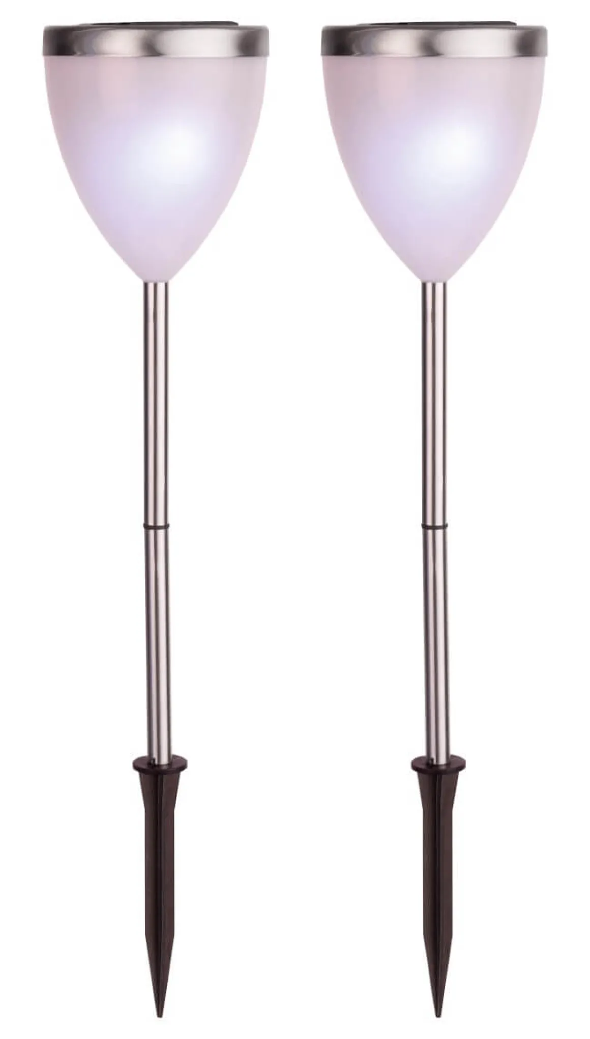 Härlig liten Solcellslampa i borstat stål med opalvit kupa som lyser med ett fint sken. Dessutom 2-pack