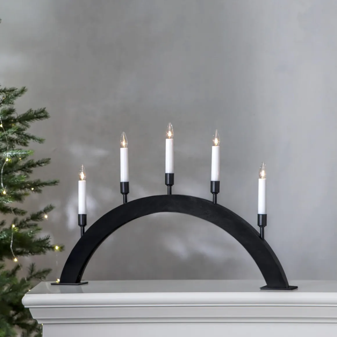 Vind är en stilren, fin och stämningsfull adventsljusstake från Star Trading. Svart betsad träbas i båge med upphöjda ljuskoppar som ger ett elegant och enkel uttryck till både hemmet och den offentliga miljön. Sprider ett behagligt ljus med sina 5 ljuskällor. Placera i ett fönster eller på en skänk för att få en härlig julkänsla.
