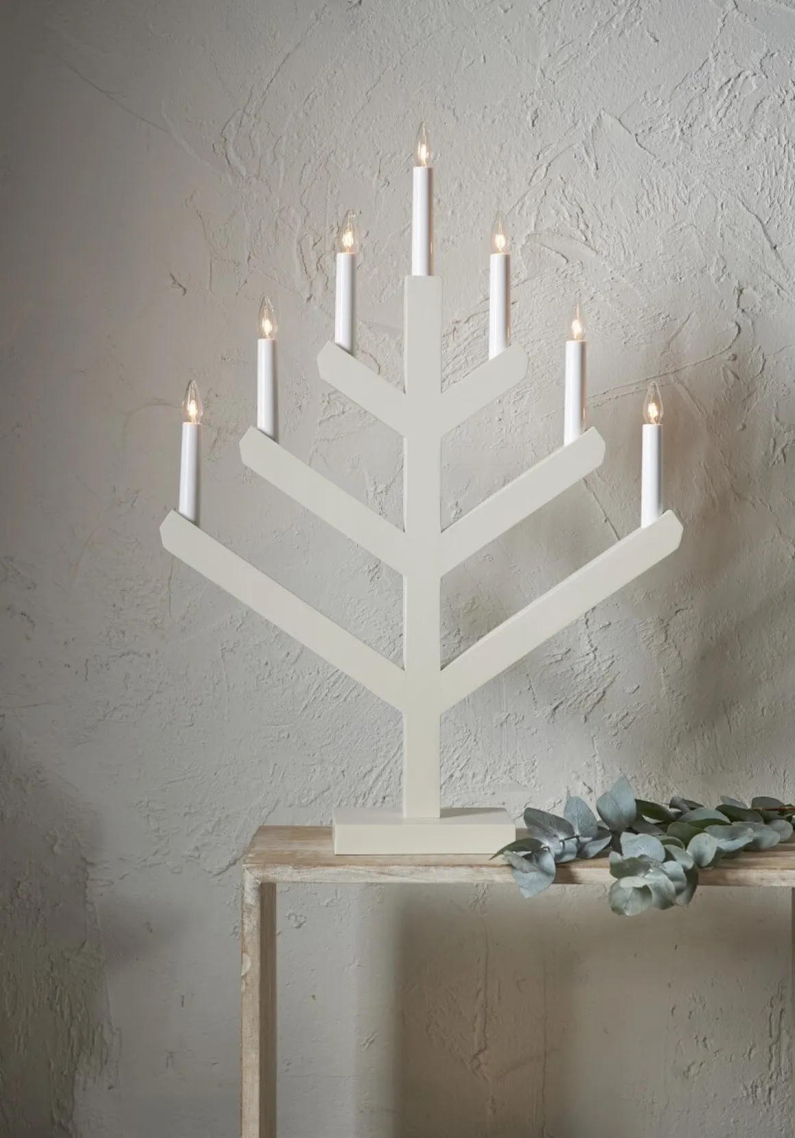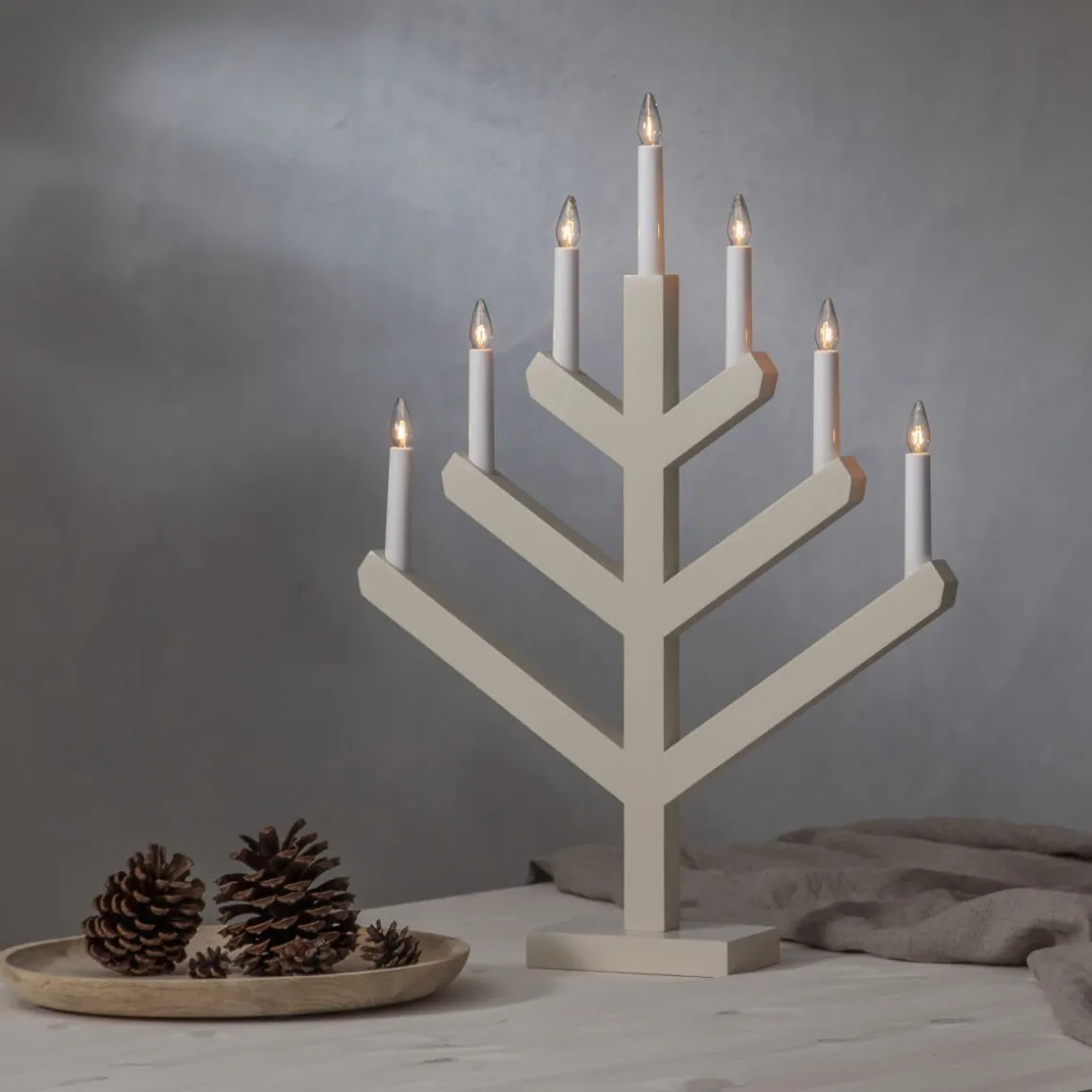 Underbar liten julnyhet från Star Trading är denna träljusstake som med en ny design ändå ger dig den klassiska ljusbilden av en 7 armad ljusstake. Läckert tycker vi! Vinga finns i flera olika färger och 2 storlekar. Här ser du stora Vinga i beige.
