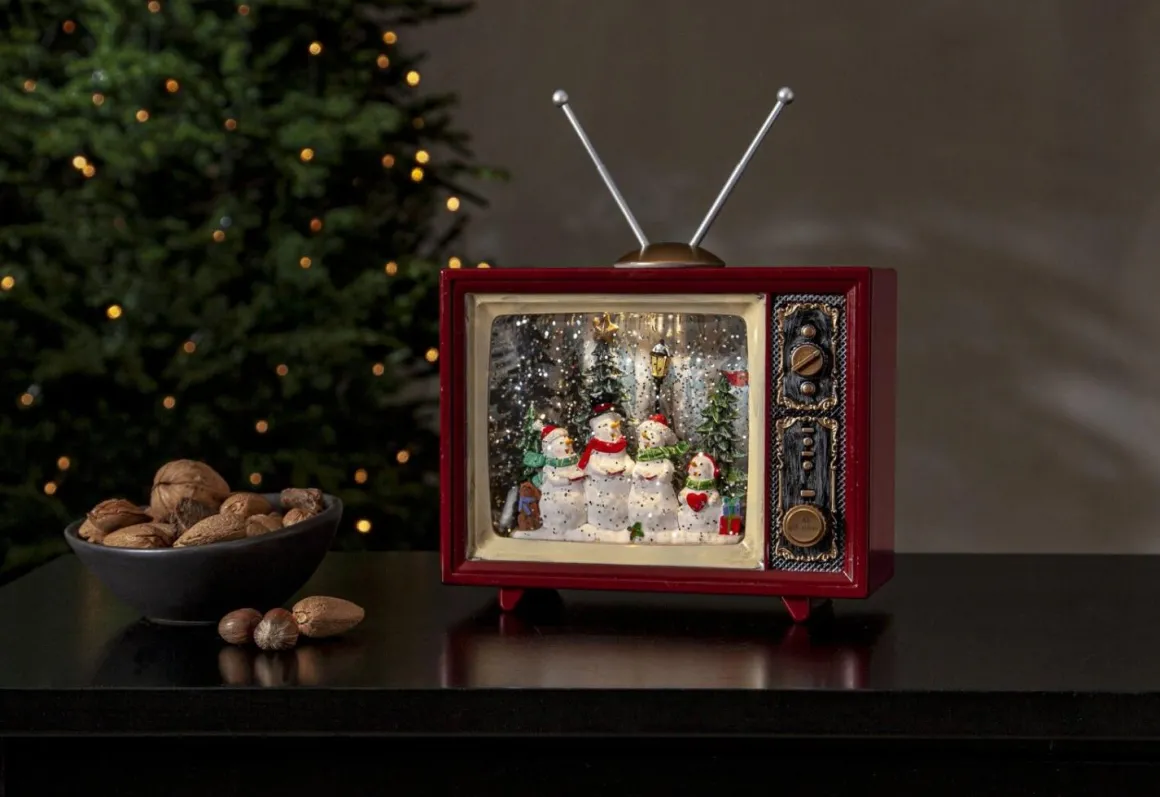 Det är någonting med just den här lilla juldekorationen som slår an en speciell ton hos mig, en nostalgi på något vis. Visst är den underbar? Den lilla Retro TV:n är fylld med vatten med glitter i som rör sig när tv:n är påslagen. Du startar den enkelt genom att vrida på en av knapparna – bara en sån sak.