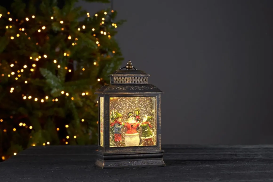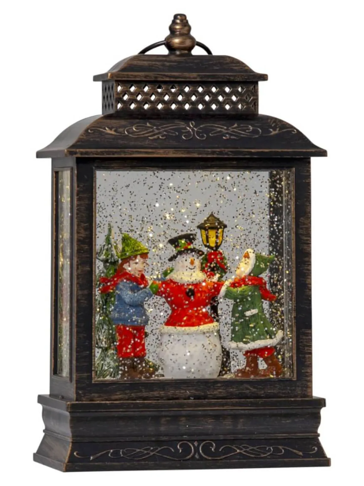 Glittrande vattenfyllt lykta med barn och snögubbe inuti från star trading. Glittervätskan är i rörelse när produkten är påslagen, lyser med ett varmt och behagligt sken. Placera på ett bord eller en hylla för en härlig julstämmning. Självklart med inbyggd timer.