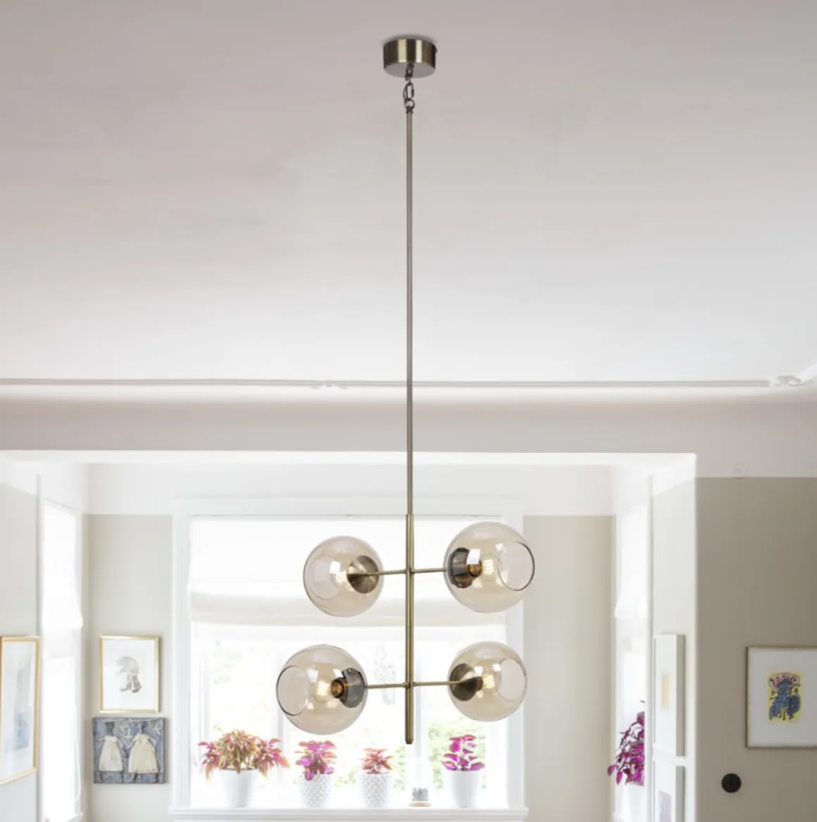 Hur Cool är inte tuffa VRI? Taklampa från Cottex med stomme i Antikmässing med amberfärgade kupor som ger ett så mjukt och behagligt sken. Vri har inte en traditionell kabel från tak till lampa utan består av 3 olika rör som du kan reglera för att öka/minska höjden – såååå snyggt!!