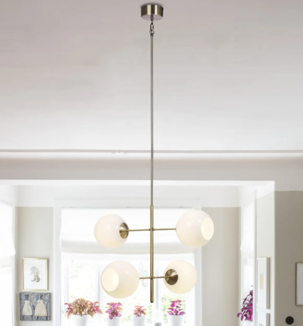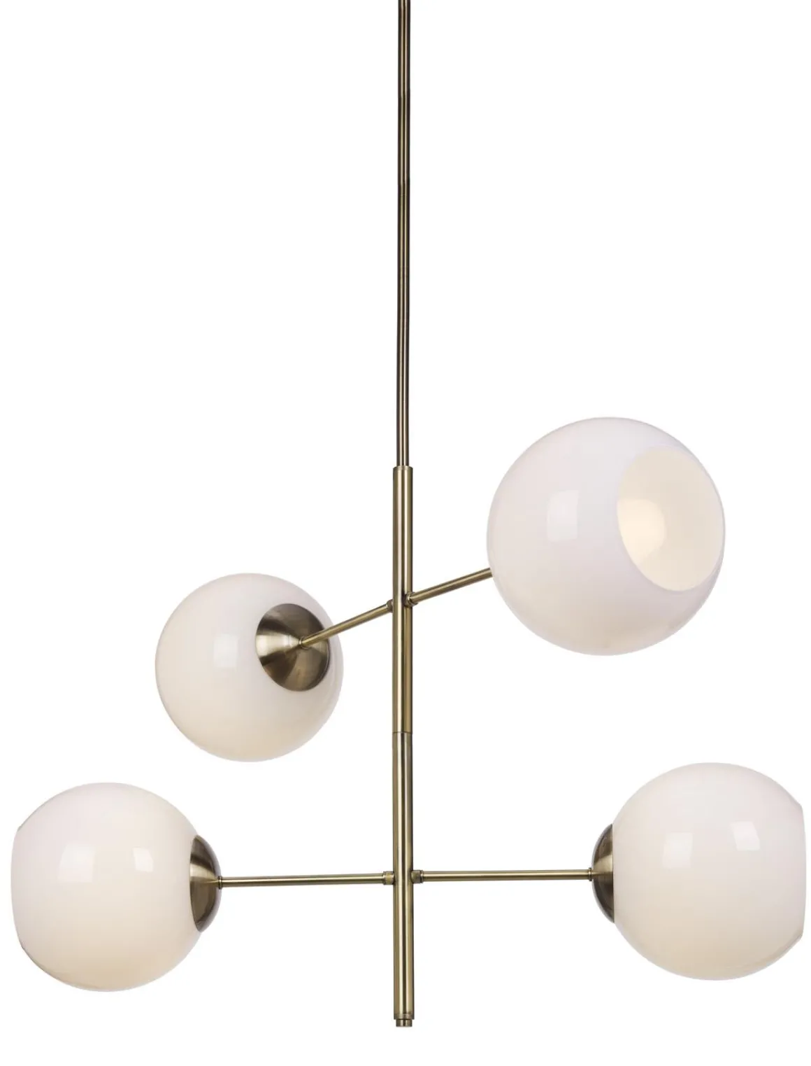 Hur Cool är inte tuffa VRI? Taklampa från Cottex med stomme i Antikmässing med opalvita kupor som ger ett så mjukt och behagligt sken. Vri har inte en traditionell kabel från tak till lampa utan består av 3 olika rör som du kan reglera för att öka/minska höjden – såååå snyggt!!