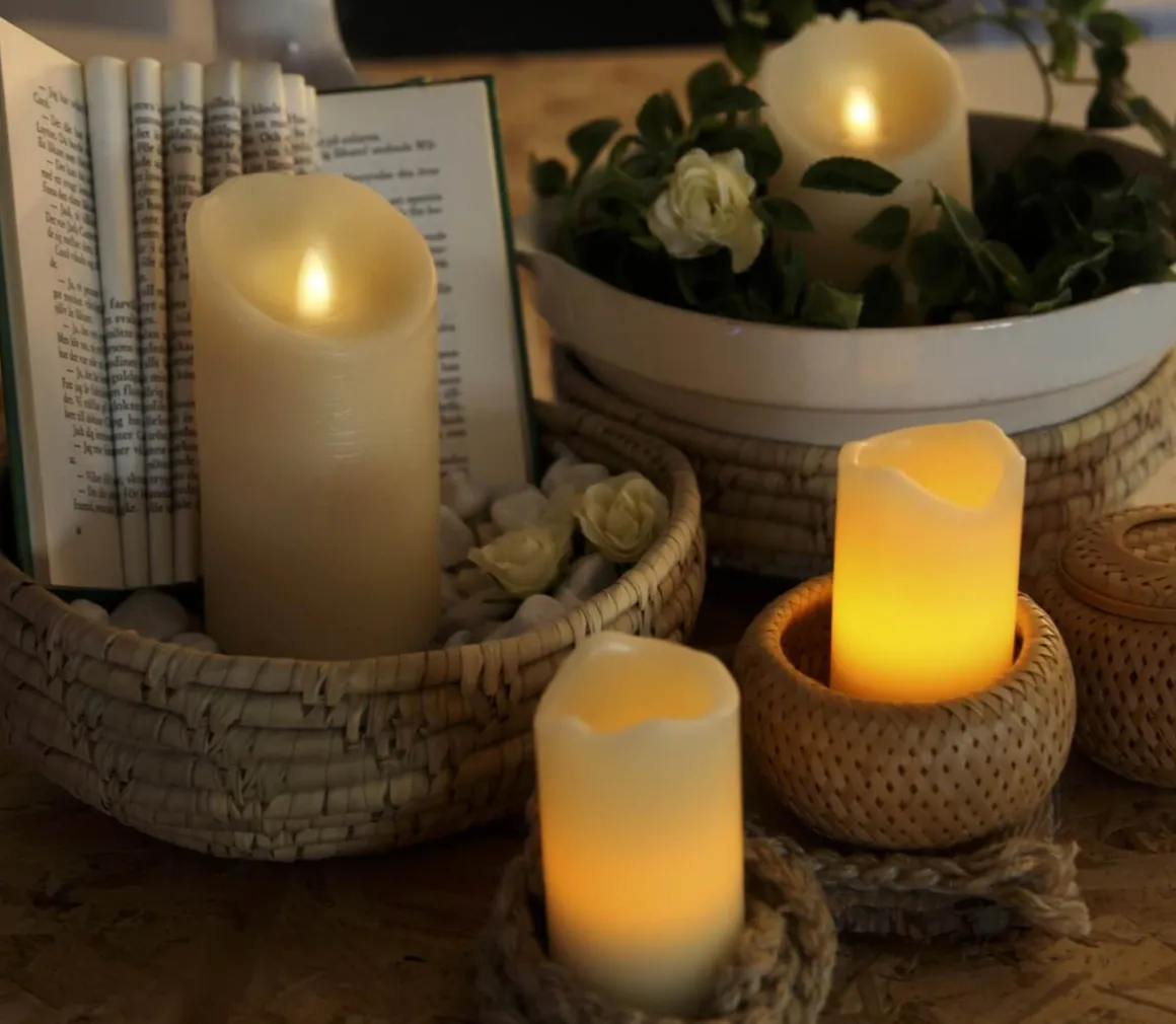 Stilrent 2-pack batteridrivna vaxljus med fina vågkanter. Perfekta för att lysa upp i hemmet och skapa mysig stämning. Den inbyggda timern gör det lätt för dig att ställa in när ljusen ska lysa.