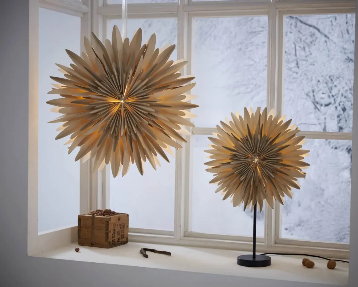 Helt underbar lager på lager stjärna från Star Trading i veckat beige papper. Winter har rundade kanter för att ge den ett mjukare intryck än sina kompisar. En läcker liten julnyheten som med säkerhet kommer ge dig den där härliga julkänslan i vintermörkret. Sladdställ och ljuskälla köpes separat.